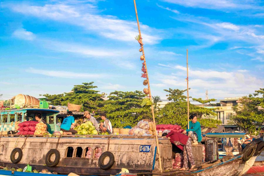 By joining this tour, you will not only enjoy a unique boat trip on the Hau River and the floating Market, but you will also experience the charm and beauty of Mekong Delta by sailing along small, green and shady waterways.