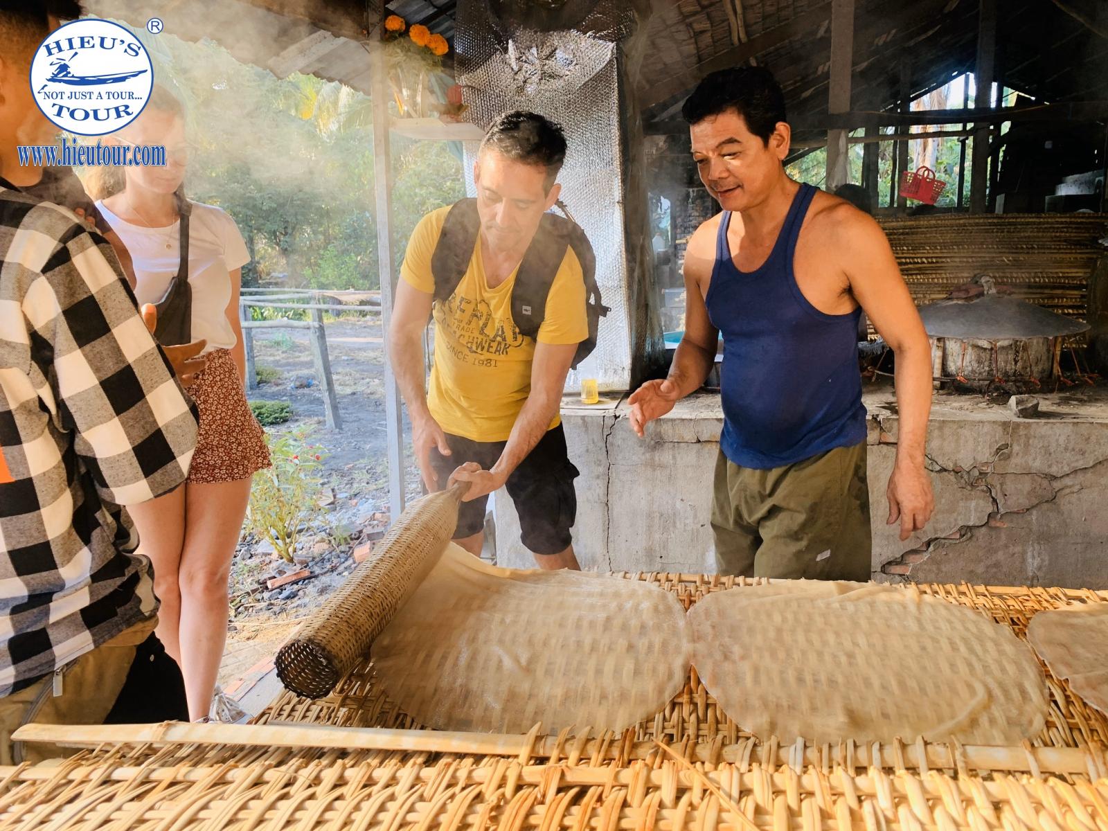 Noodle homemade: Coming to Vietnam, most of the tourists already have a chance to try different types of noodles here, but do you know about hu tieu which is the famous one in the Mekong delta. If not, you should go on a trip to try hu tieu in the floating market and then head to 6 Hoai Noodle factory to see how it is made. Normally, most of the noodles in Vietnam are rice noodles, but it’s different here, so you’re going to see hu tieu - rice and tapioca noodles in this traditional manual factory.